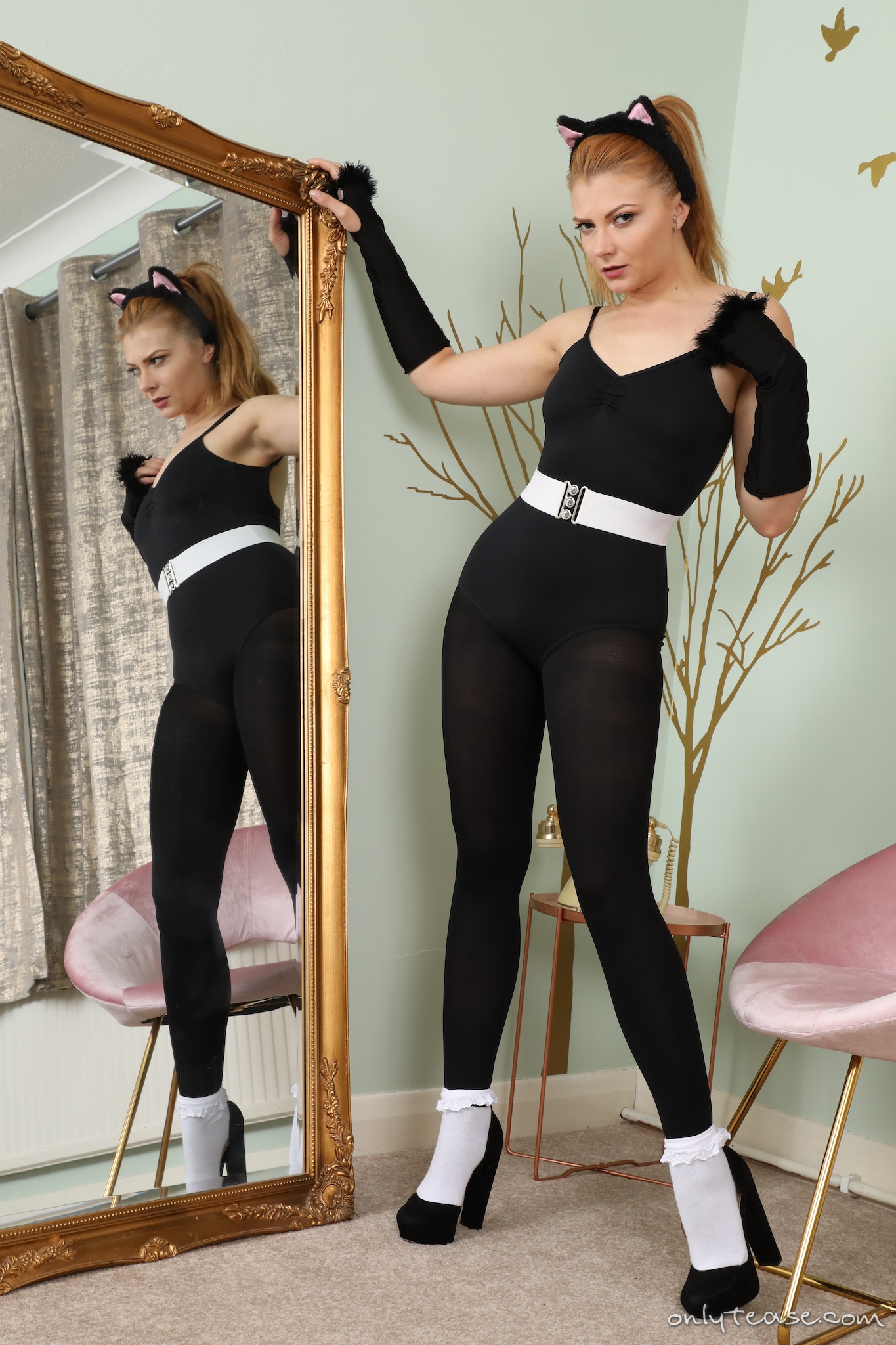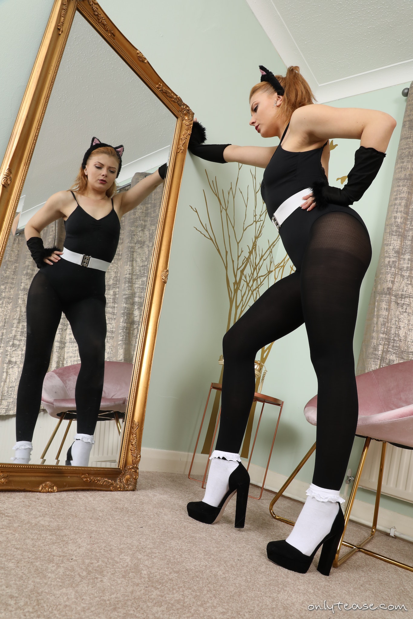 Scarlett Foxett from Only Tease as a cute kitten in high heels with socks and black pantyhose