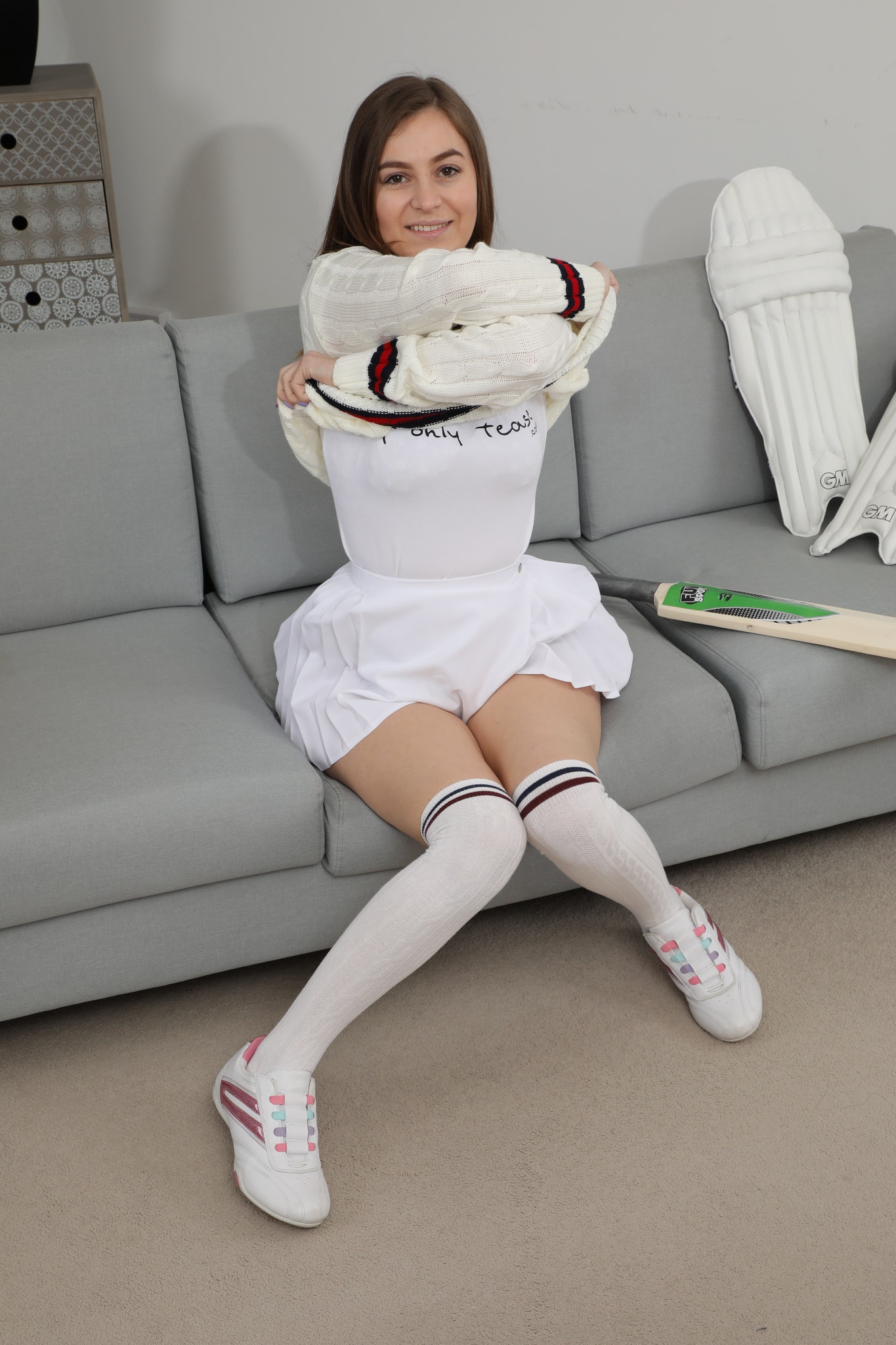 Summer from OnlyAllSites in a pleated miniskirt with over the knee socks